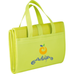 The Surf and Sand Polypro Beach Mat is a folding beach mat with double reinforced carry handles. It features a side open top pocket and a hook and loop strap closure to make it portable when not in use as a mat. Includes an inflatable pillow.  Unfolded blanket size: 71 inches by 35 inches wide. Blanket weight: 354 grams.