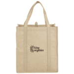 The Kai Grocery Tote is made from soft poly-weave material with a modern look. This tote features a covered bottom board for stability.