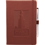 Set includes (2700-07) Pedova Pocket Bound JournalBook and (1065-08) Preston Dual Ballpoint Stylus. Elastic pen loop. Built-in elastic closure. Stitched cover. Corresponding cover color ribbon page marker. Expandable accordion pocket. Includes 80 sheets of lined paper.