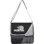 The Rhythm Non-Woven Messenger Bag has an open main compartment with a hook and loop flap closure. It also includes convenient front accessory pockets, a front mesh pocket and adjustable shoulder strap.