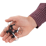 The Mini drone with camera is pocket size drone but demands attention. The drone featuers a 480P camera capable of taking photos and vidoes. The auto-hover function allows for easy control during flight. It also features headless mode and one button return. Simply charge the drone and your fun begins. Capable of flying up to 160 ft. for 5 minutes on a single charge. It takes 30 minutes to charge the drone from 0 to 100%. The remote includes 2 AA batteries. Micro SD Card not included.