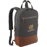 The Alternative® Slim 15" Computer Backpack moves you through the world in a different way. Creating products people want to use every day; Alternative represents quality materials, durable construction and design clarity. The slim compu-backpack fits laptops up to 15.6 inches, iPad® or other tablets, and all of your essentials in a modern silhouette that does not sacrifice form for function. Zippered front pocket can hold your iPhone® or other smartphone along with cables or other accessories. Main compartment with interior organization has a pocket for your folders, tablet, pens, business cards and other essentials. Padded backpack straps and large top grab handle make sure it is comfortable to carry as well. Two side pockets are for additional storage. Alternative branding details include subtle embroidery and genuine leather accents.
