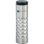 Streamline your business traveling with the elleven™ Traverse collection. Design features an intricate geometric cut. Flip top lid with and double-wall vacuum insulated stainless steel construction. Keeps drinks hot for 5 hours and cold for 15 hours. 16oz.