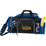 The Getaway 23" Deluxe Duffel Bag features a zippered main compartment with a U-shaped opening and reinforced double 19.5 inch handles. The large zippered front pocket also has an additional exterior zippered pocket, two front-adjustable elastic cord pockets, and wide zippered side pockets. A detachable, adjustable padded shoulder strap and a hook and loop closure handle wrap make carrying easy and convenient.