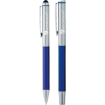 Exclusive Luxe design. Pen set includes a ballpoint stylus and roller ball pen, and features a deep blue or graphite bottom barrel complemented with a polished chrome upper barrel. Subtle Luxe detailing on middle ring. Premium black ink cartridges and rubberized stylus tip ideal for touchscreens such as tablets, phones, and retail payment pads.