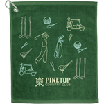 This lightweight 1.3lb/dozen golf towel is 100% cotton and comes with a grommet and aluminum carabiner clip for attaching to your golf bag.