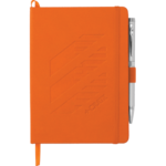 Smooth PU, hard cover bound journal. Color matching elastic pen loop, elastic closure and ribbon page marker. 64 sheets of white lined paper.