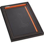 Set includes (2700-91) Color Pop Bound JournalBook™, (6620-31) Ambassador Square Ballpoint and (9094-01) 2 Pc Journal Gift Box. Built-in elastic closure. Ribbon page marker. Expandable accordion pocket. Includes 96 sheets of lined paper. Add on decorating available on the gift box.