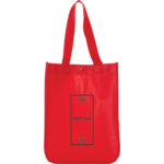 Perfect alternative to plastic bags. Open main compartment with snap closure. Laminated material is water-resistant and easily wipes clean. 8" drop handles.
