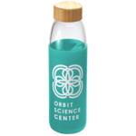 The Kai Glass Bottle 18oz is a single-wall borosilicate clear glass bottle wrapped with soft grip silicone sleeve. It features a bamboo screw-on lid and is BPA free. It's non-slip bottom fits in most car cup holders. Do not freeze or microwave. Choose between color imprinting or our new cutting edge, dishwasher safe, laser decoration method.