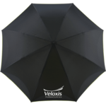 Innovative inverted folding design: opens and closes "inside-out" making it easier to use when entering and exiting a vehicle and keeping the water contained and outer surfaces dry. The umbrella can stand on its own when closed allowing the water to drain out to dry. Manual opening with push button pinch-proof runner. Dual layer pongee canopy. Available for one-day turn with Sureship®.