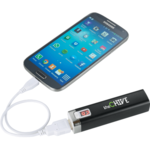 This little battery backup will keep your mobile devices charged up. The 2,200 mAh internal Li-Ion Grade A battery has enough life to fully charge a smartphone, giving you about 8 hours of additional talk time. The LED digital power indicator will confirm exactly how much charge remains within the power bank. The 5V/1A USB output means that it charges at the same rate of most wall chargers. Includes a USB to Micro USB connecting cable which can recharge the battery backup or be used to charge up devices with a Micro USB input like Android Smartphones from Samsung®, Motorola®, HTC®, Nokia®, and others. Our batteries have undergone evaluation for numerous quality standards. This product is also available with a custom wrap for the packaging. See 7121-90 Jolt with Digital display Power bank with Full Color Wrap