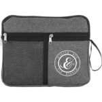 The Multi-Purpose Travel Bag is ideal for toiletries, cosmetics or other travel necessities. It features a zippered top pocket, front mesh pocket and a side loop.