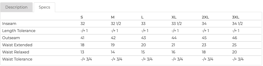 • Sizing Details